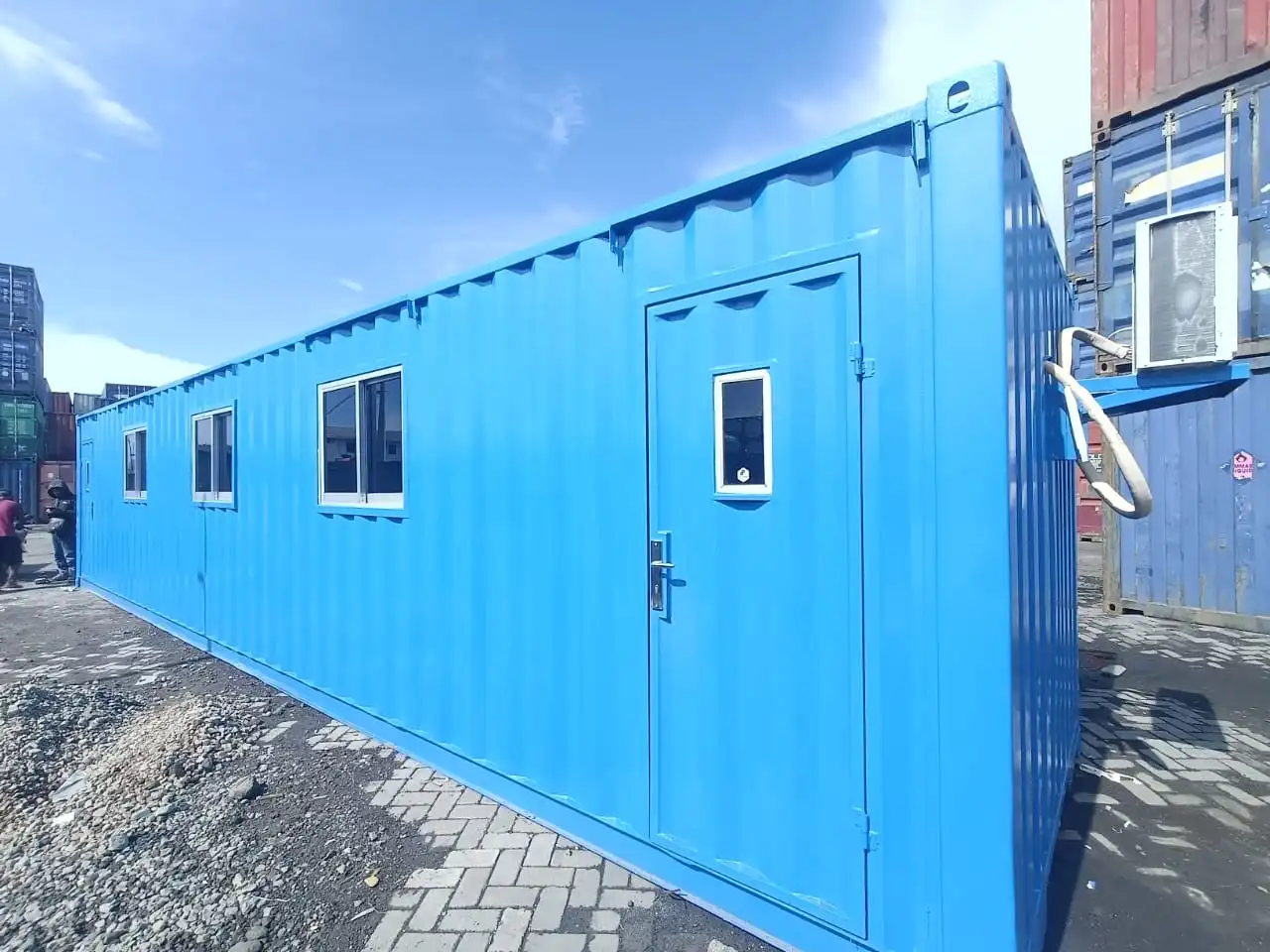 Untuk kebutuhan ruangan kantor yang lebih besar, kami jual container office surabaya 40 feet. Produk ini dirancang untuk menampung tim yang lebih besar, berfungsi sebagai ruang serbaguna, atau kantor pusat di lokasi proyek skala besar. Kustomisasi adalah keunggulan utama dari kontainer modifikasi ini.